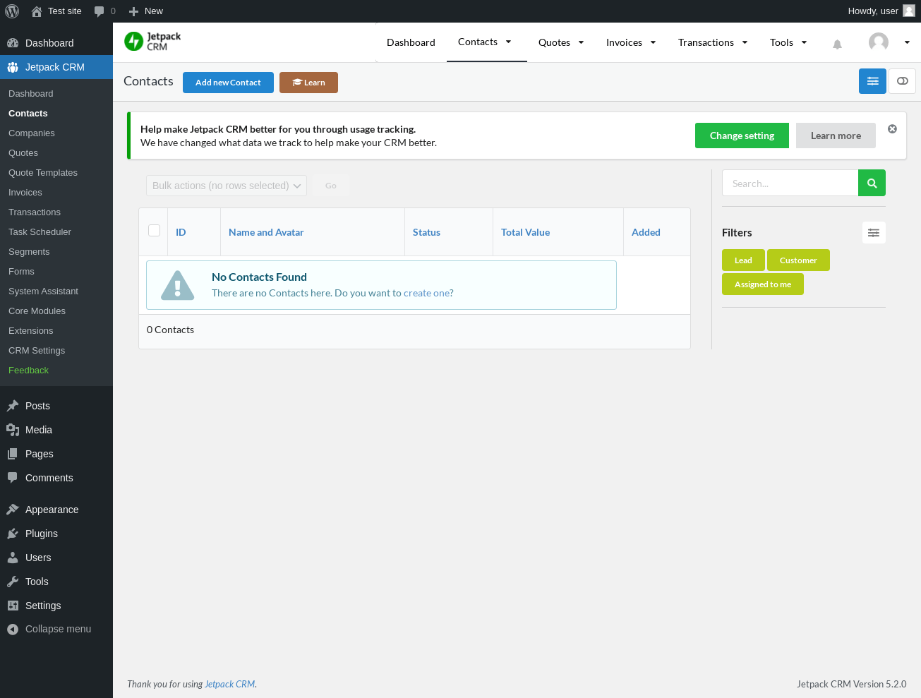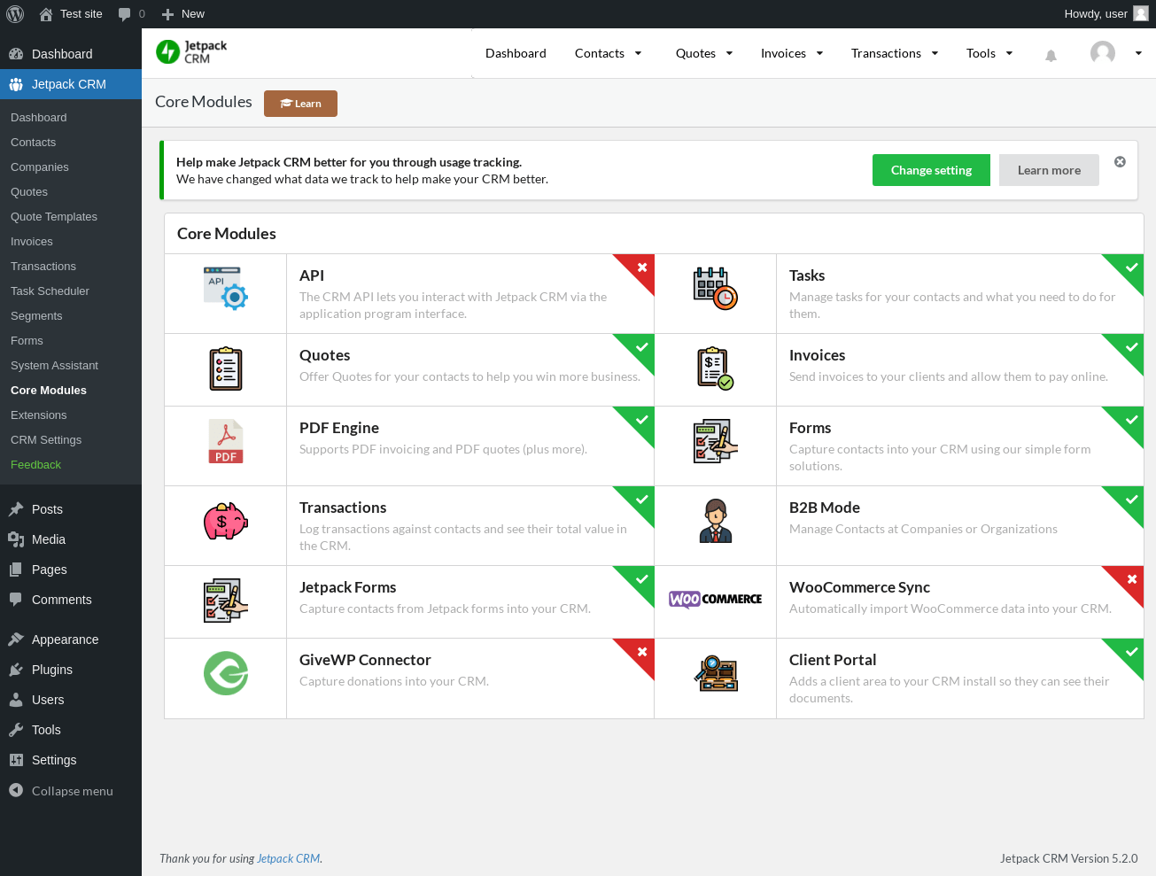 Does Jetpack CRM work with WordPress 6.0.2 and PHP 7.4.8? A smoke test was performed on .