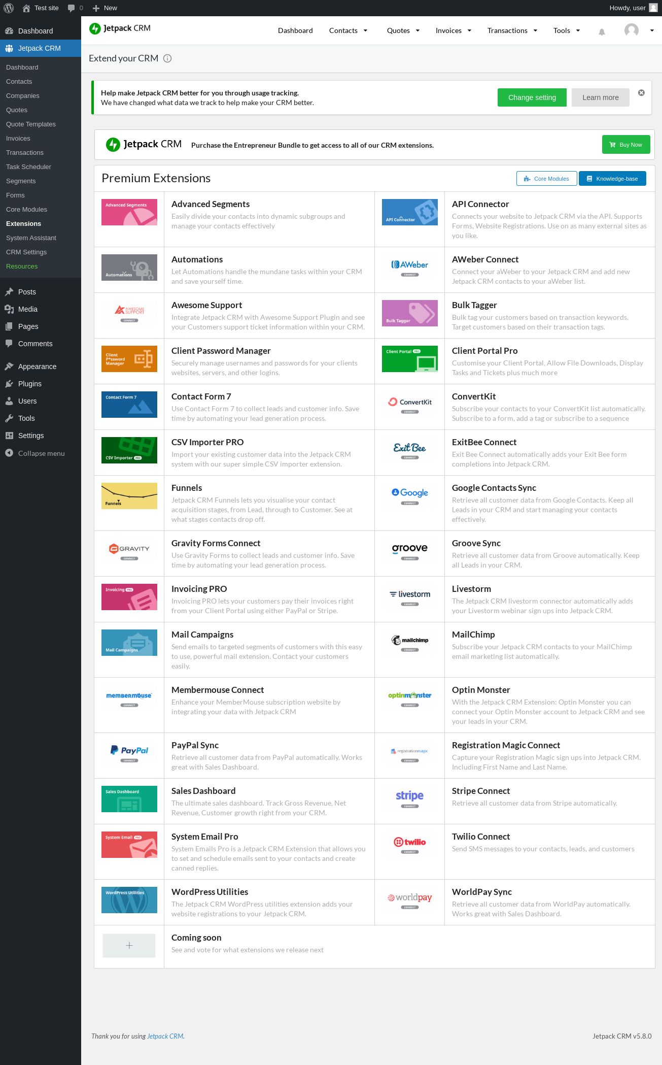 | URL | /wp-admin/admin.php?page=zerobscrm-extensions |